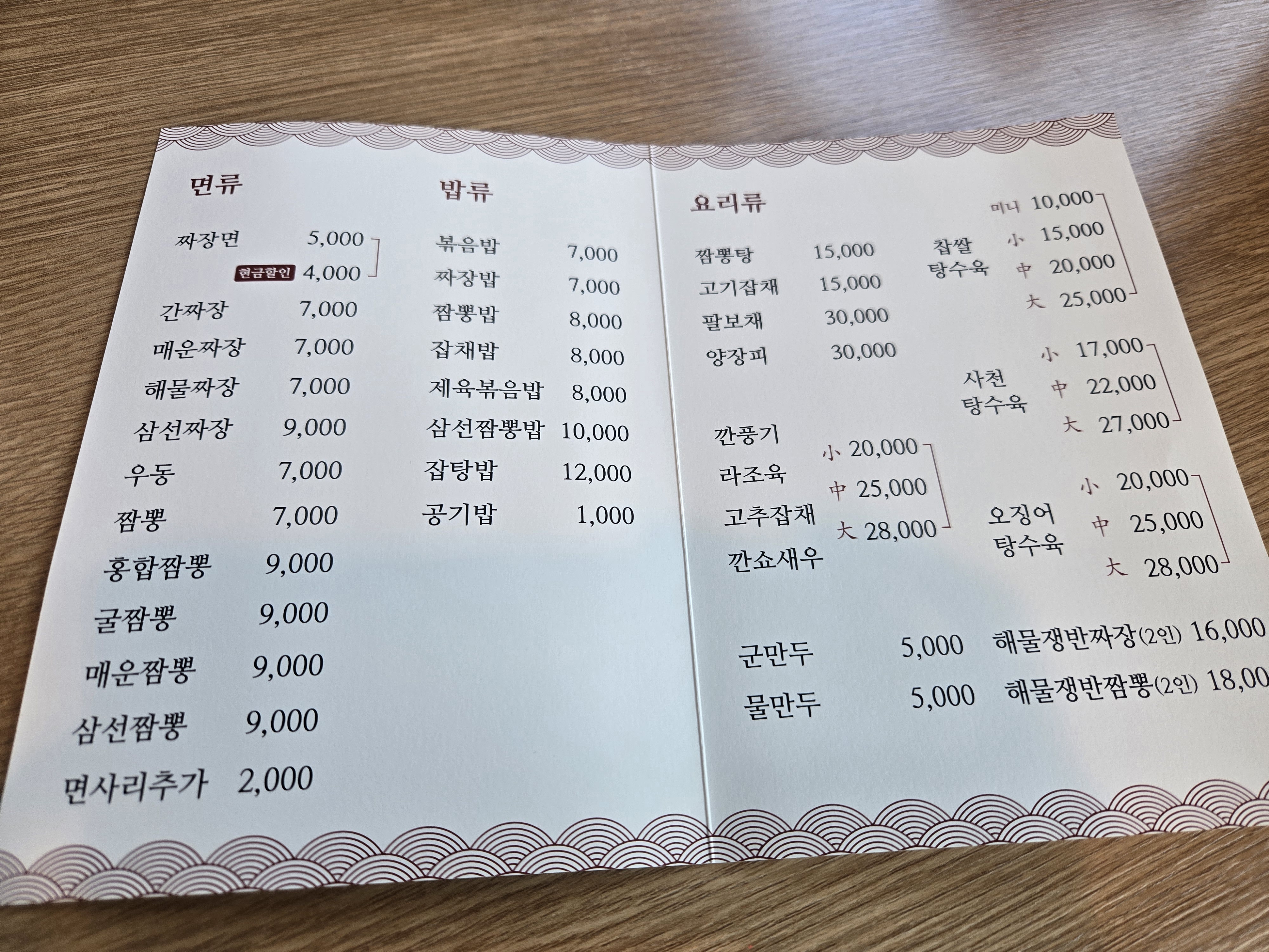• 짜장면 2개 (개당 5,000원 / 현금가 4,000원)