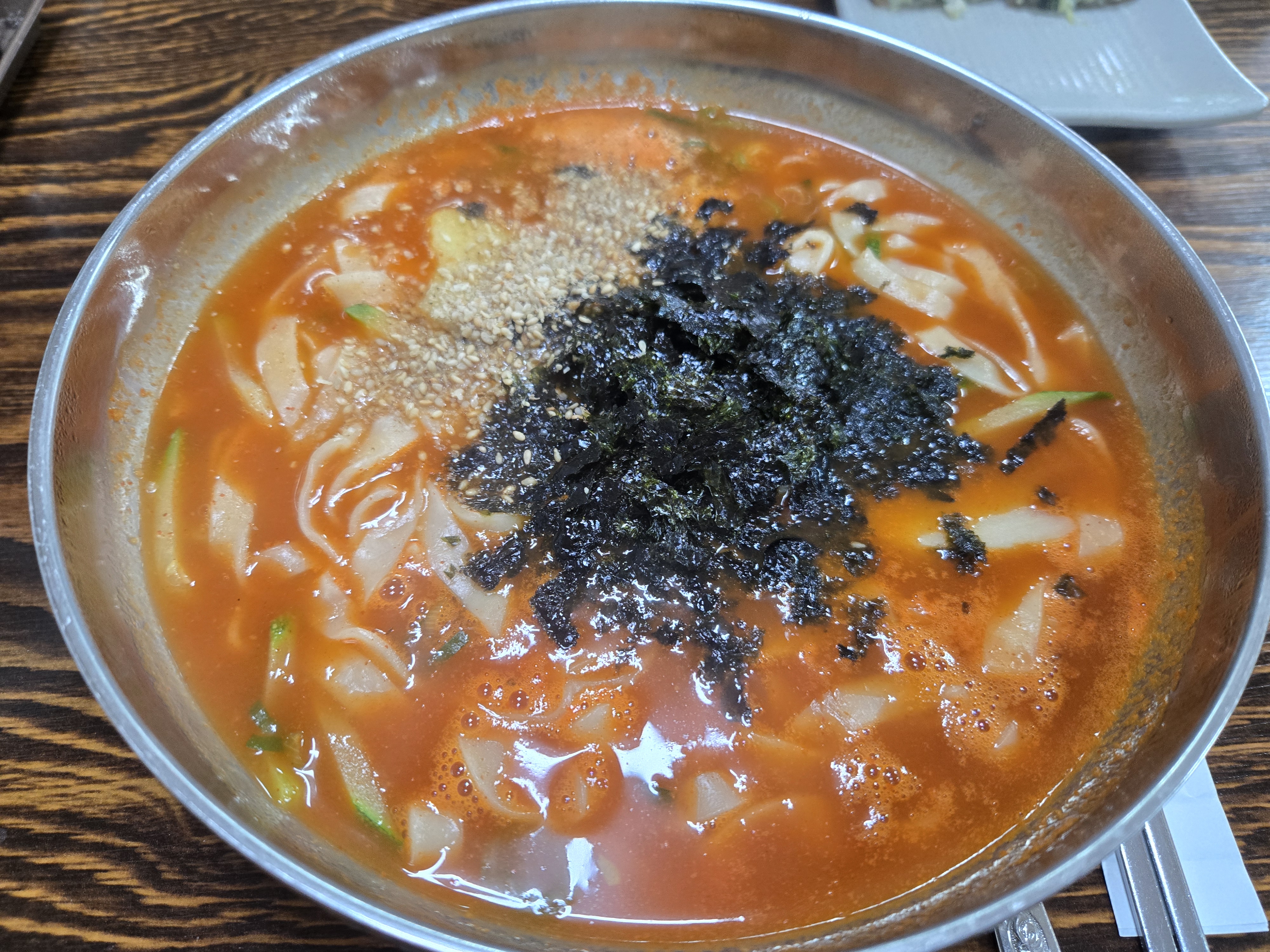 장칼국수는 첫 숟갈부터 고추장의 깊은 맛이 느껴졌습니다.