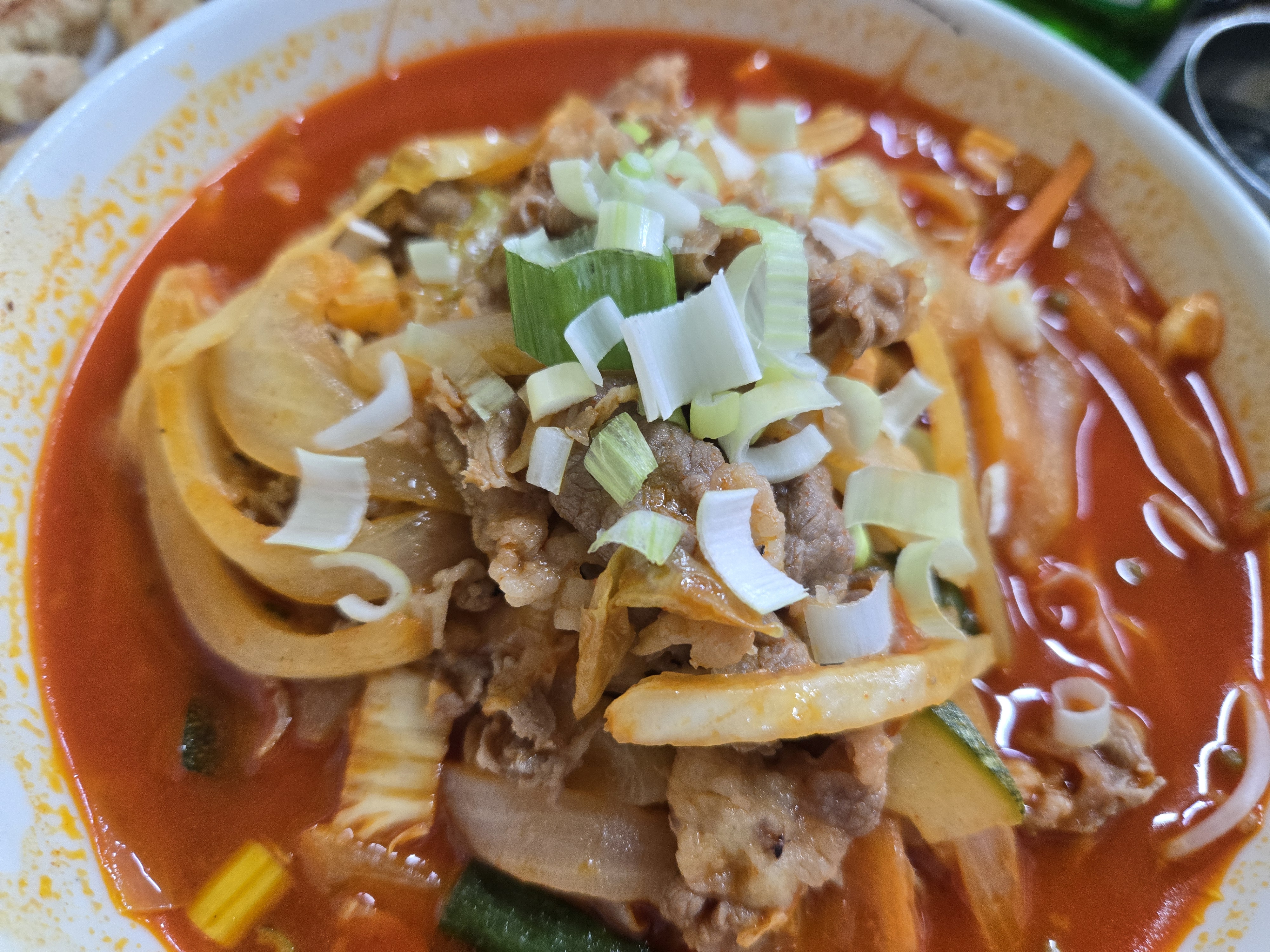 숙주가 들어가 있어 살짝 고기 쌀국수 느낌도 납니다. 국물이 걸쭉하고 진해서 얼큰함보다는 깊고 구수한 맛이 강했어요.