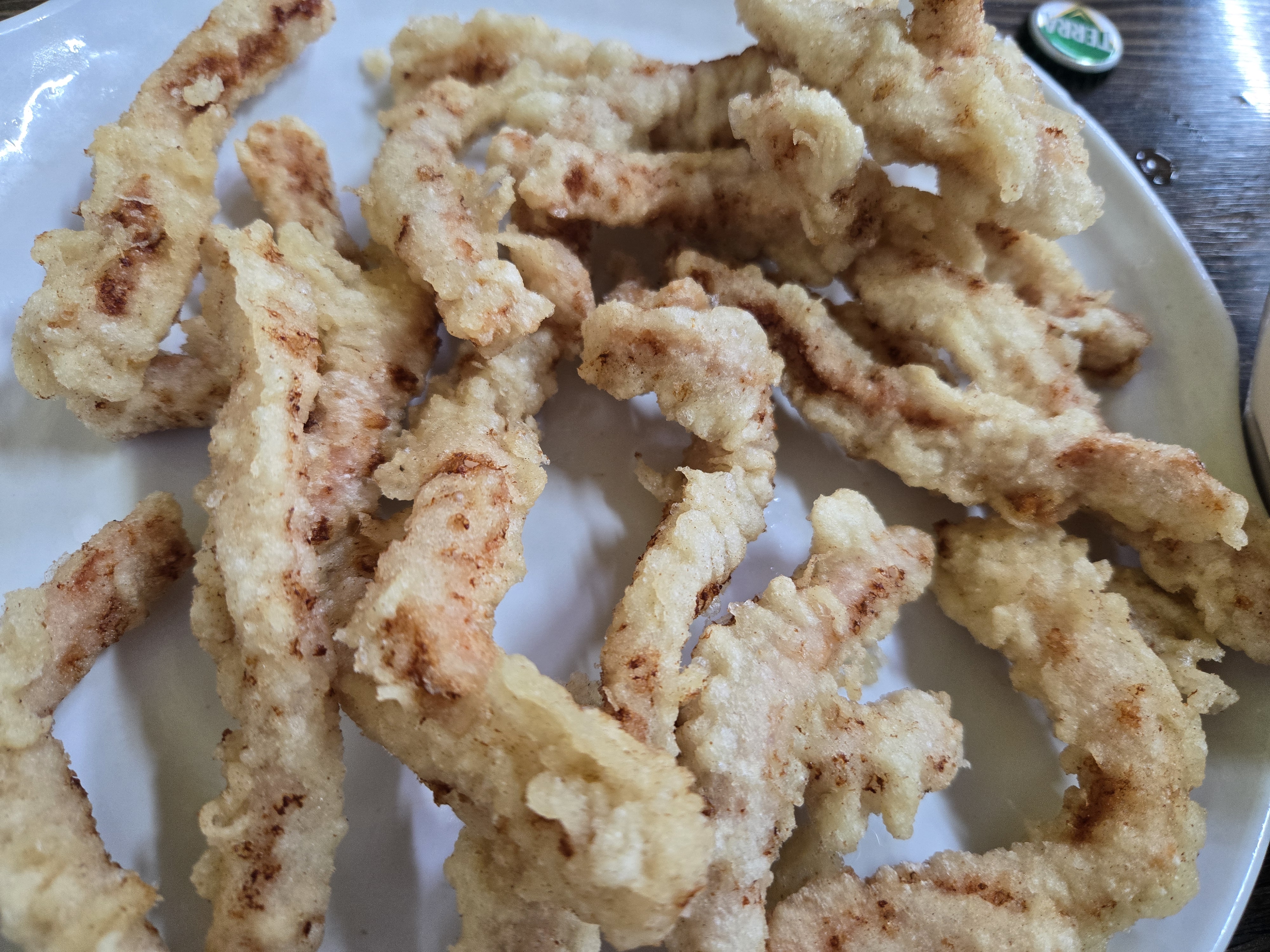 길쭉한 모양의 튀김인데, 튀김옷이 두껍지 않아 바삭하면서도 고소했습니다. 고기는 잡내 없이 부드럽고 질기지 않았어요.