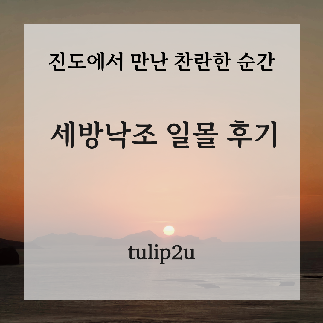 전라남도 진도로 짧은 여행을 떠났을 때 가장 잊히지 않는 풍경은 세방낙조 일몰이었어요. 평소 사진으로만 보던 일몰과는 또 다른 감동이었죠.