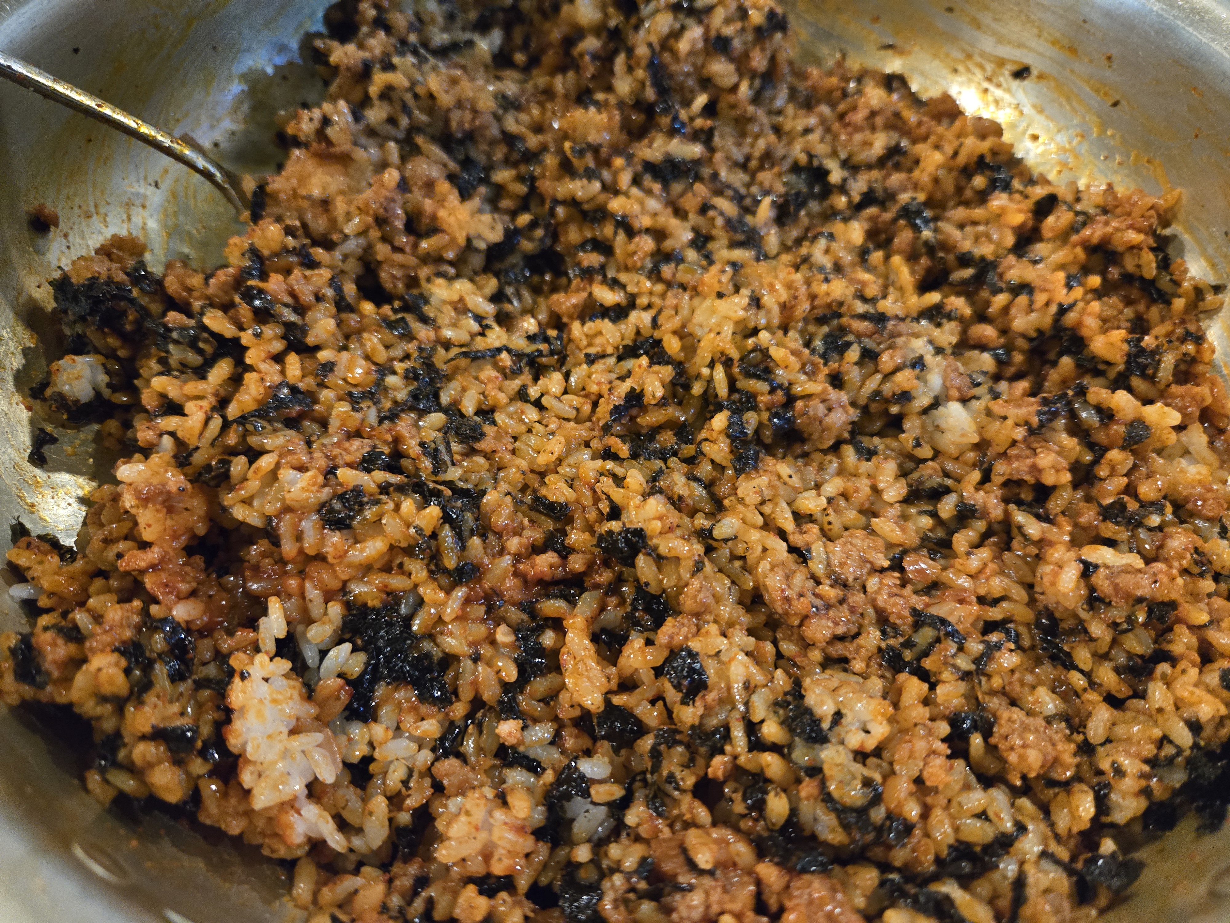 비벼서 김에 싸 먹는 방식인데, 양념 쪽갈비와 정말 잘 어울립니다.