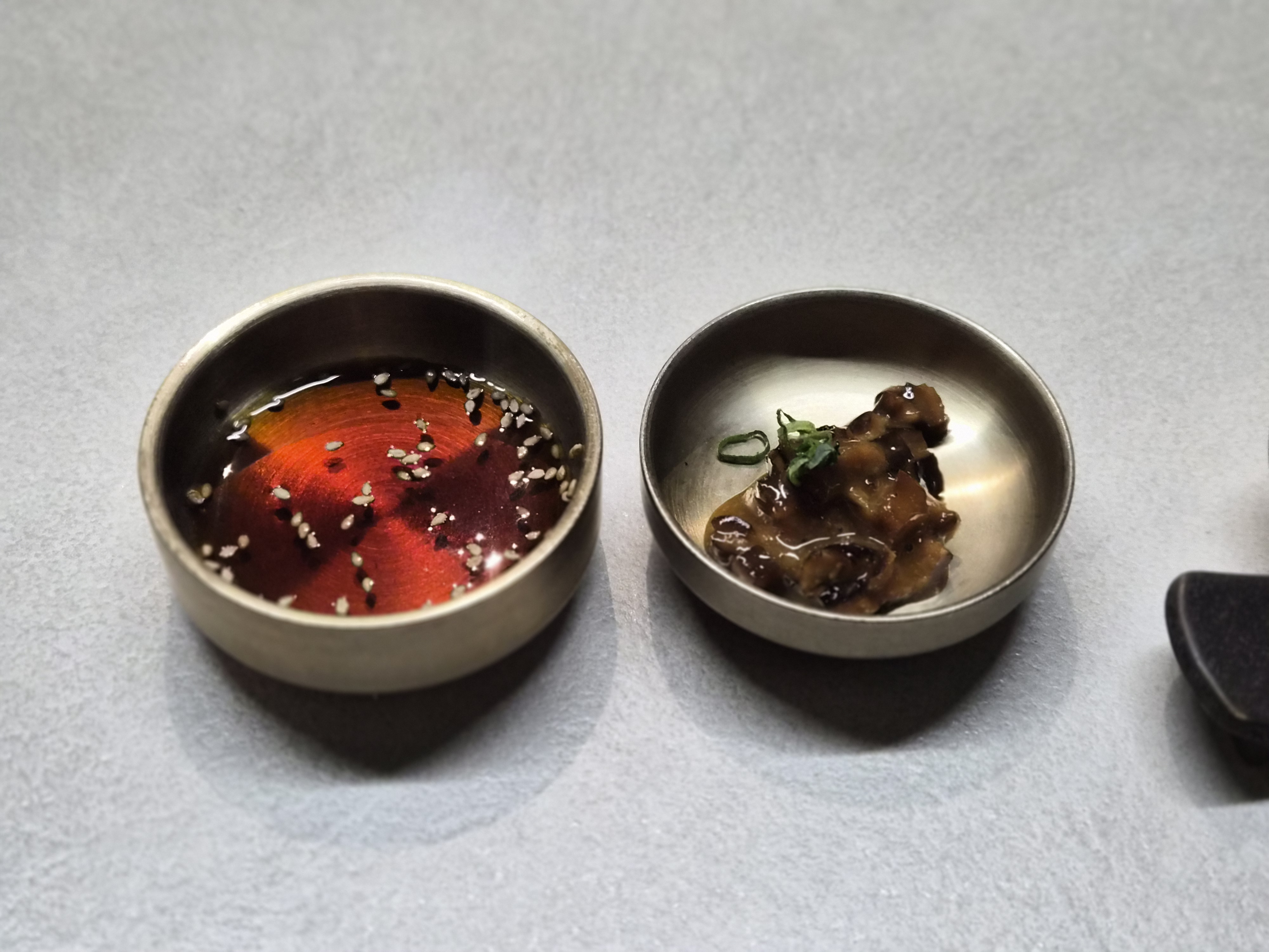 육회는 감태와 함께 먹으니 식감과 풍미가 잘 어울렸습니다.