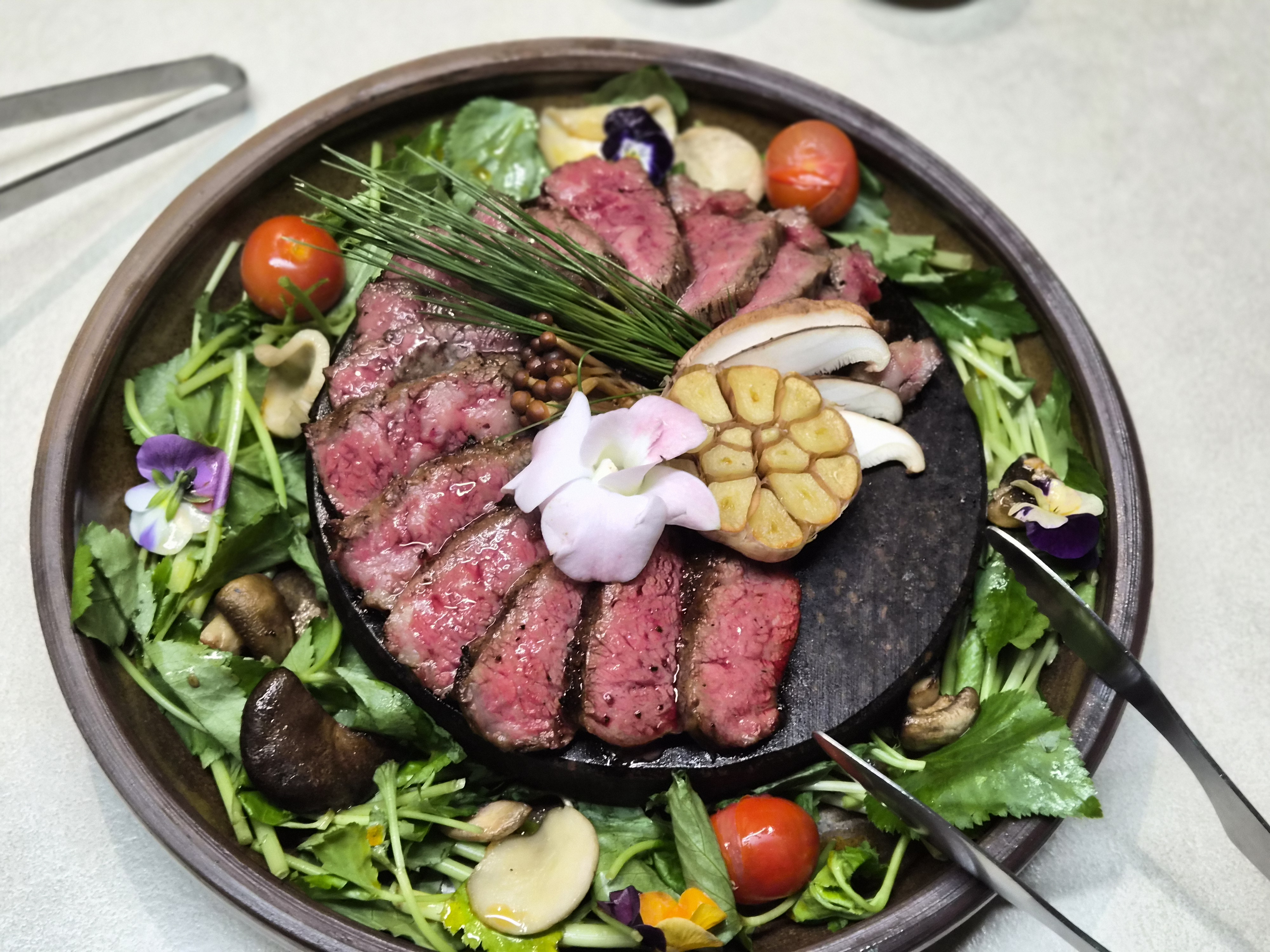 한우 양념갈비는 익힘 정도가 적당했고, 돌판에 제공되어 따뜻한 상태로 유지되는 점이 인상적이었습니다. 전체적으로 고기 조리에 신경 쓴 느낌이었습니다.