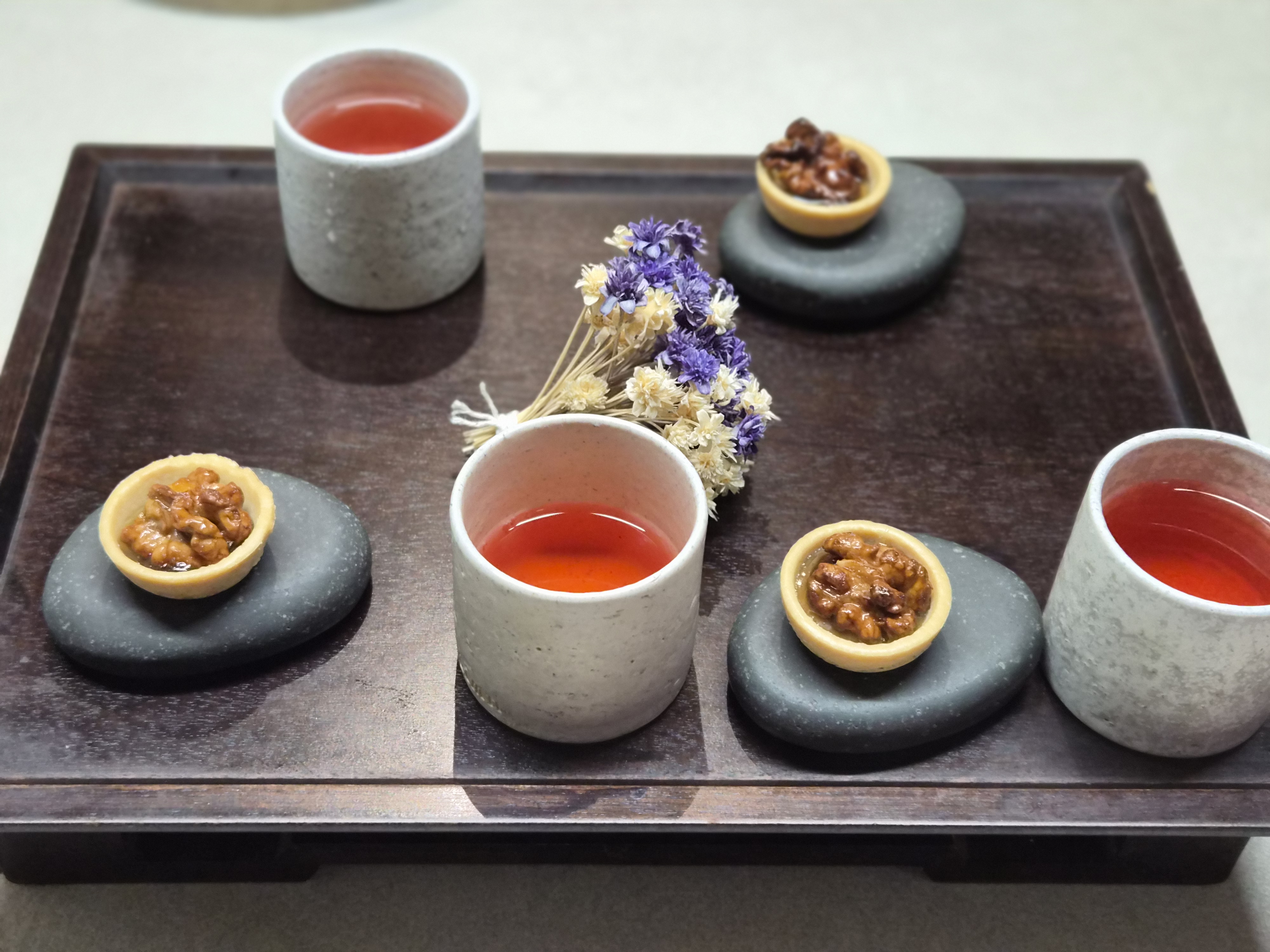 후식으로는 호두정과와 오미자차가 제공되었고, 생일자에게는 셔벗과 함께 생일 연출이 더해진 디저트가 나와 분위기를 살려주었습니다.