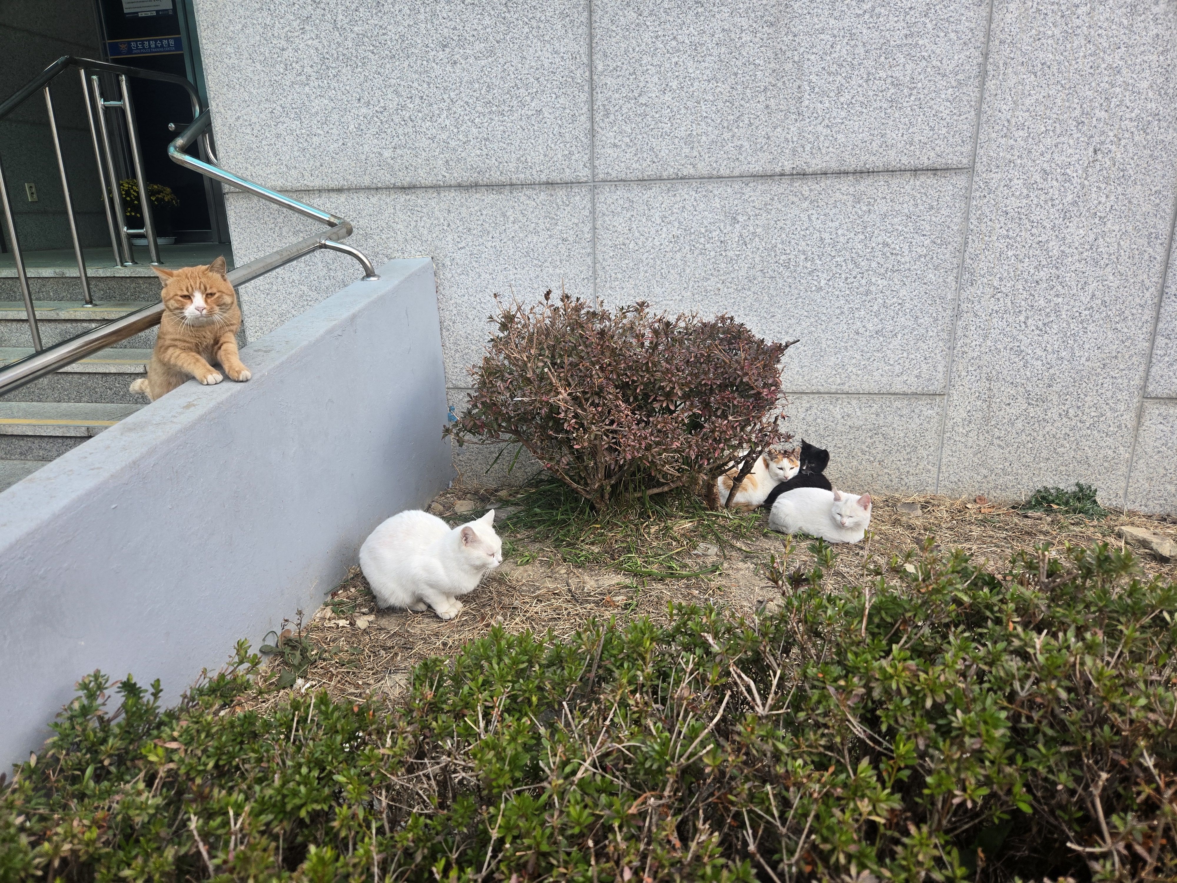 저녁 시간에 바베큐장 쪽으로만 가도 고양이들이 떼로 몰려옵니다.