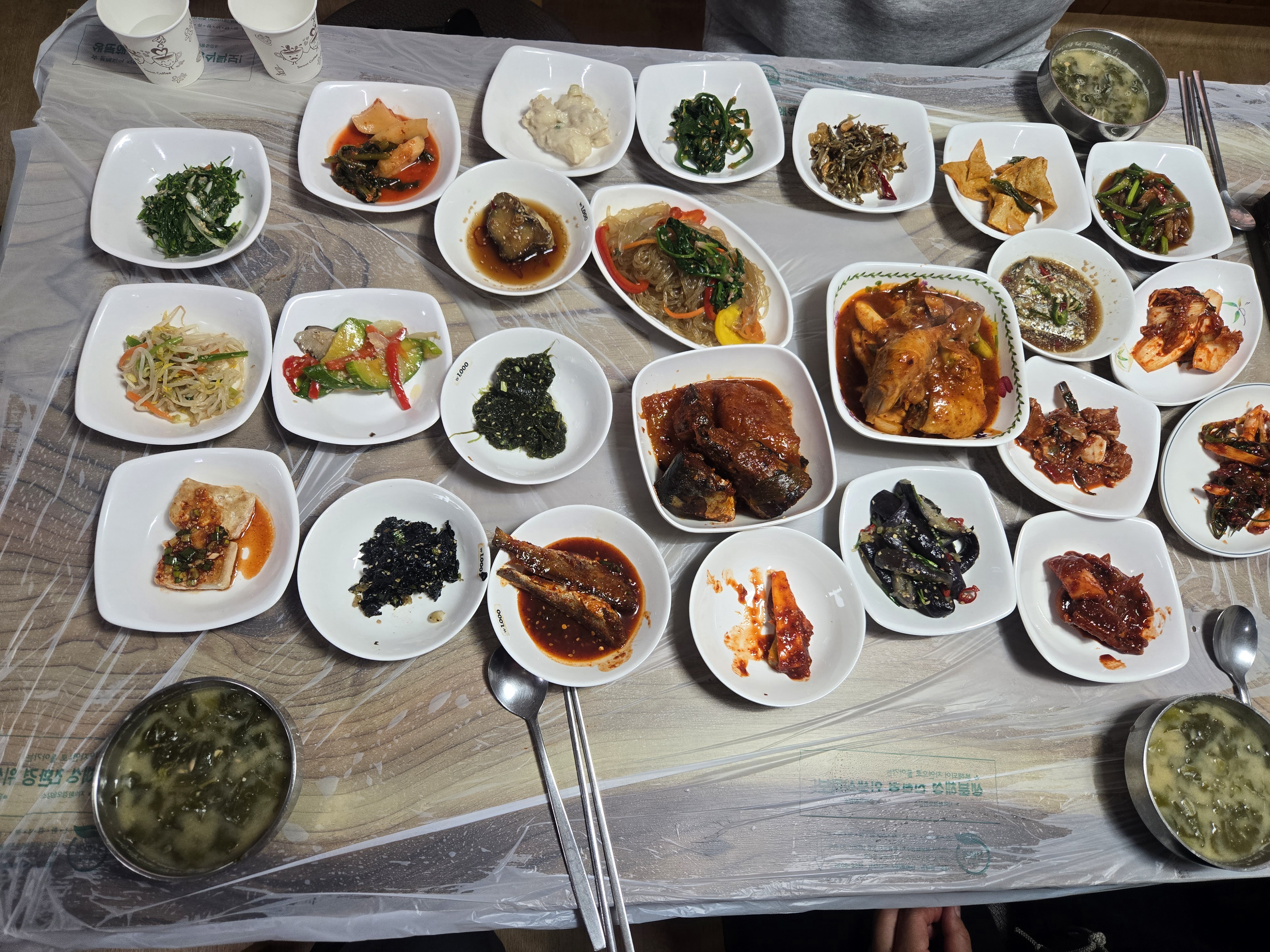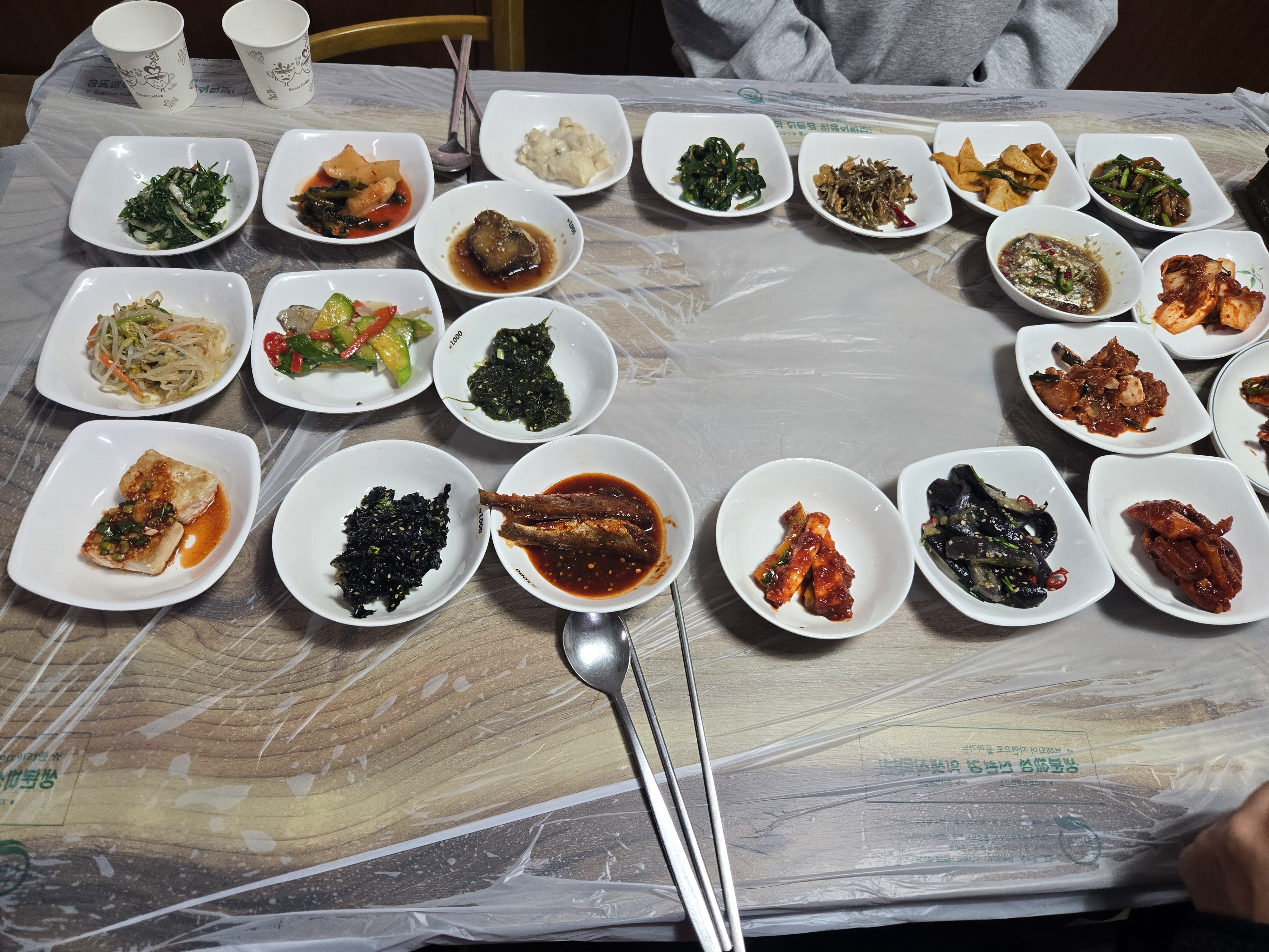 말 그대로 상다리 부러질 듯한 백반이 한 상 가득 차려졌고, 반찬 가짓수만 해도 대략 20가지가 훌쩍 넘는 느낌이었어요.