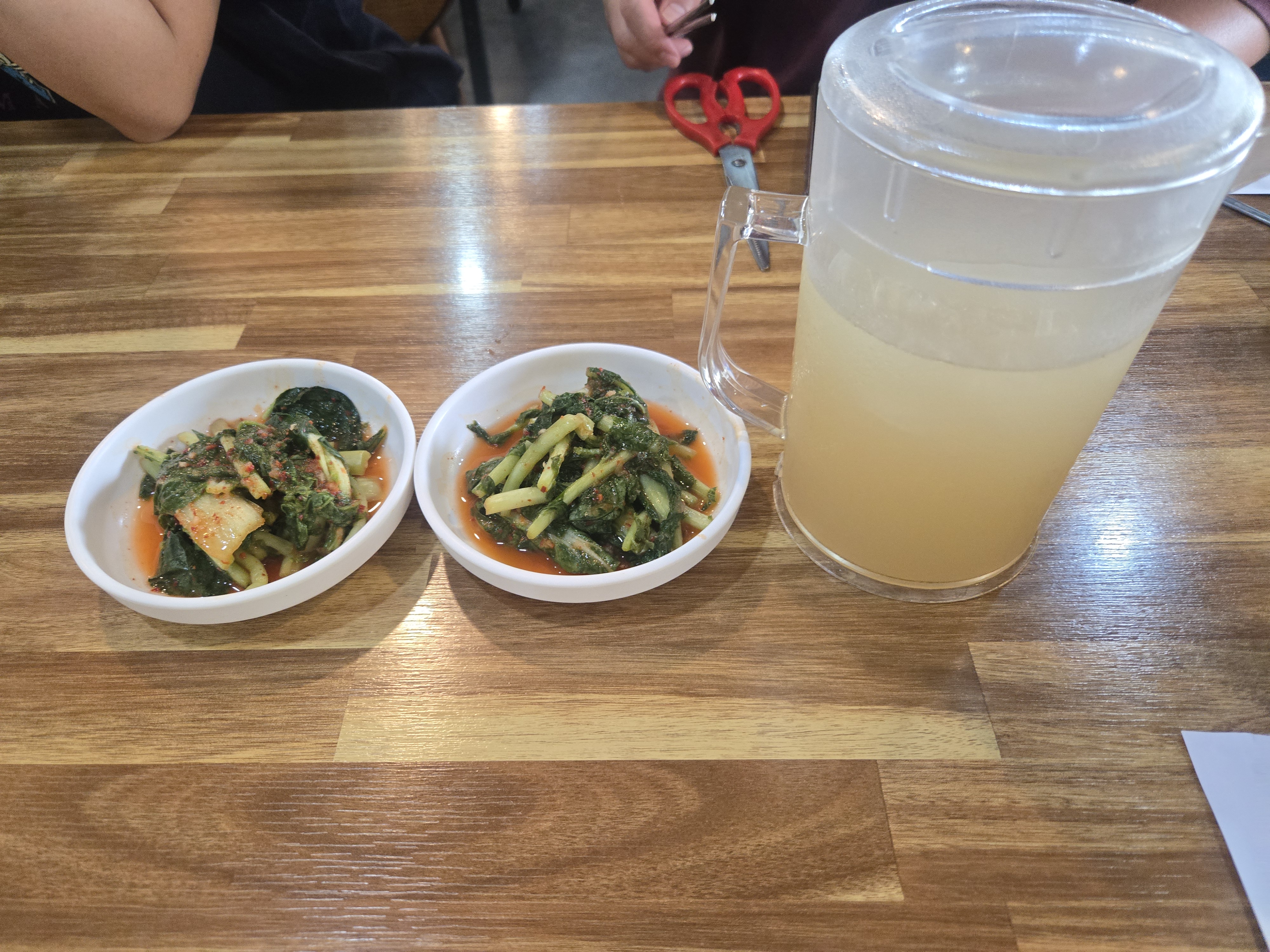 기본 찬으로는 열무김치와 육수가 함께 나옵니다.