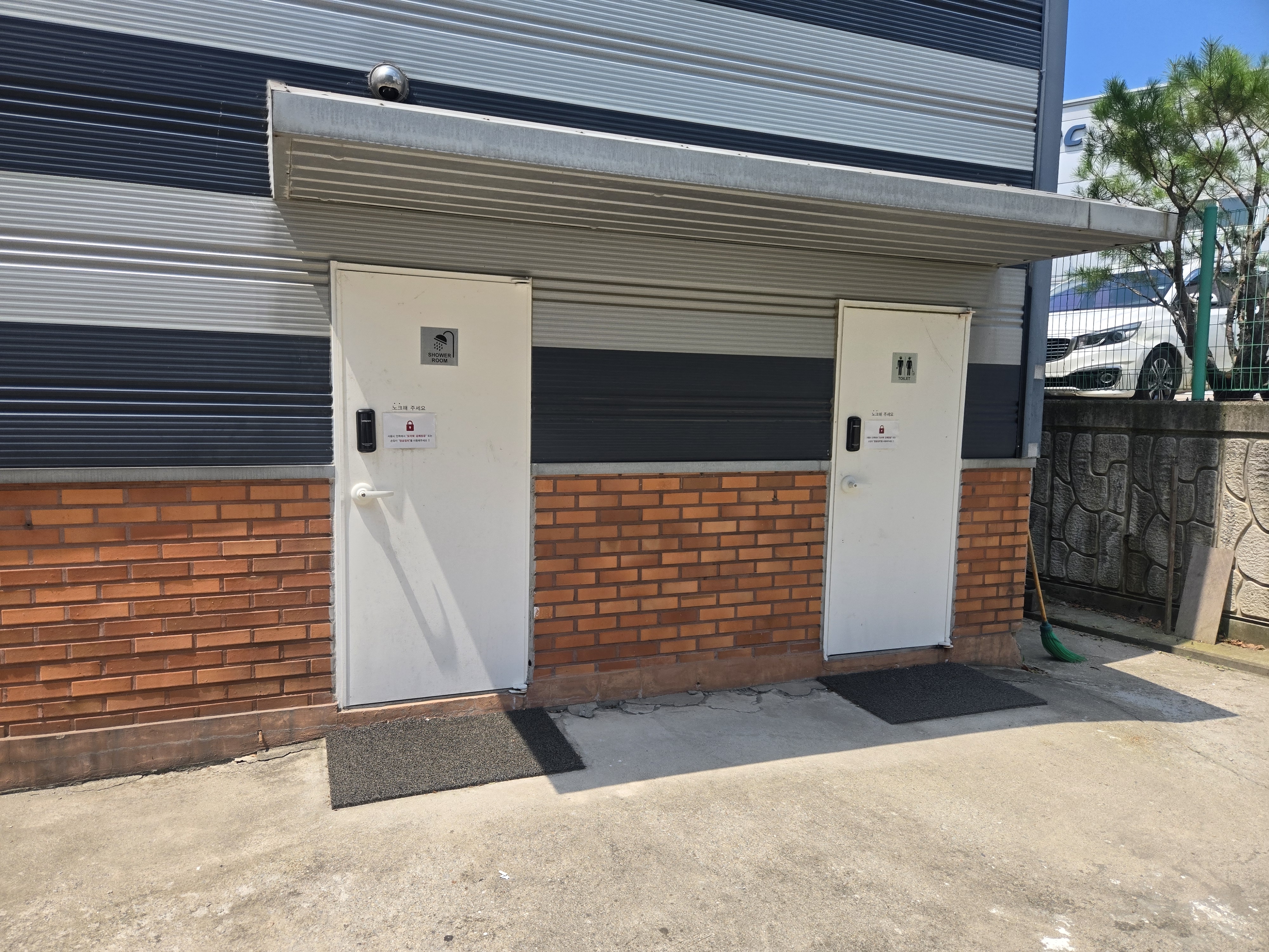 입구 앞쪽에 마련돼 있고 깨끗하고 냄새 없이 관리가 잘 되어 있어요.