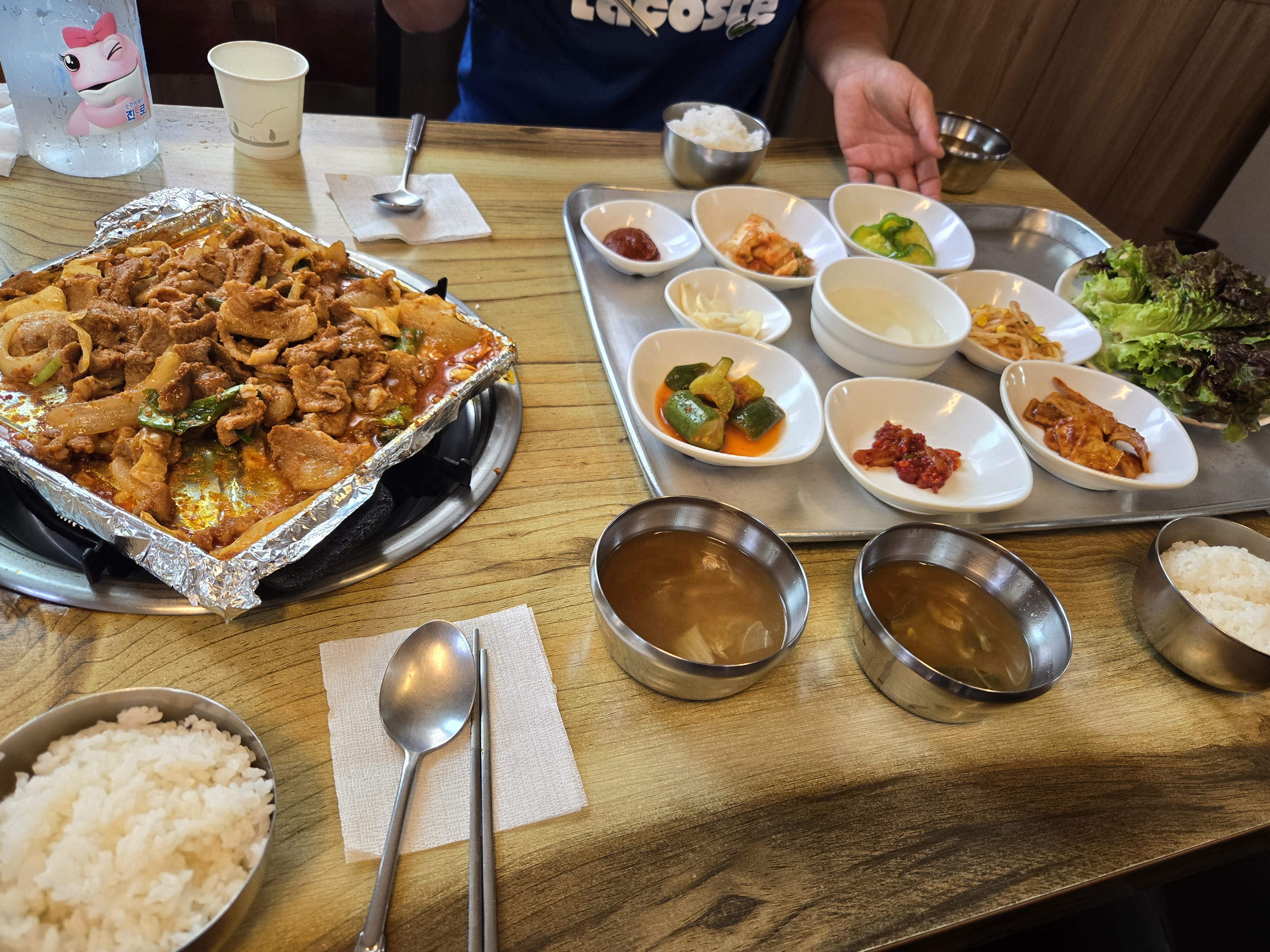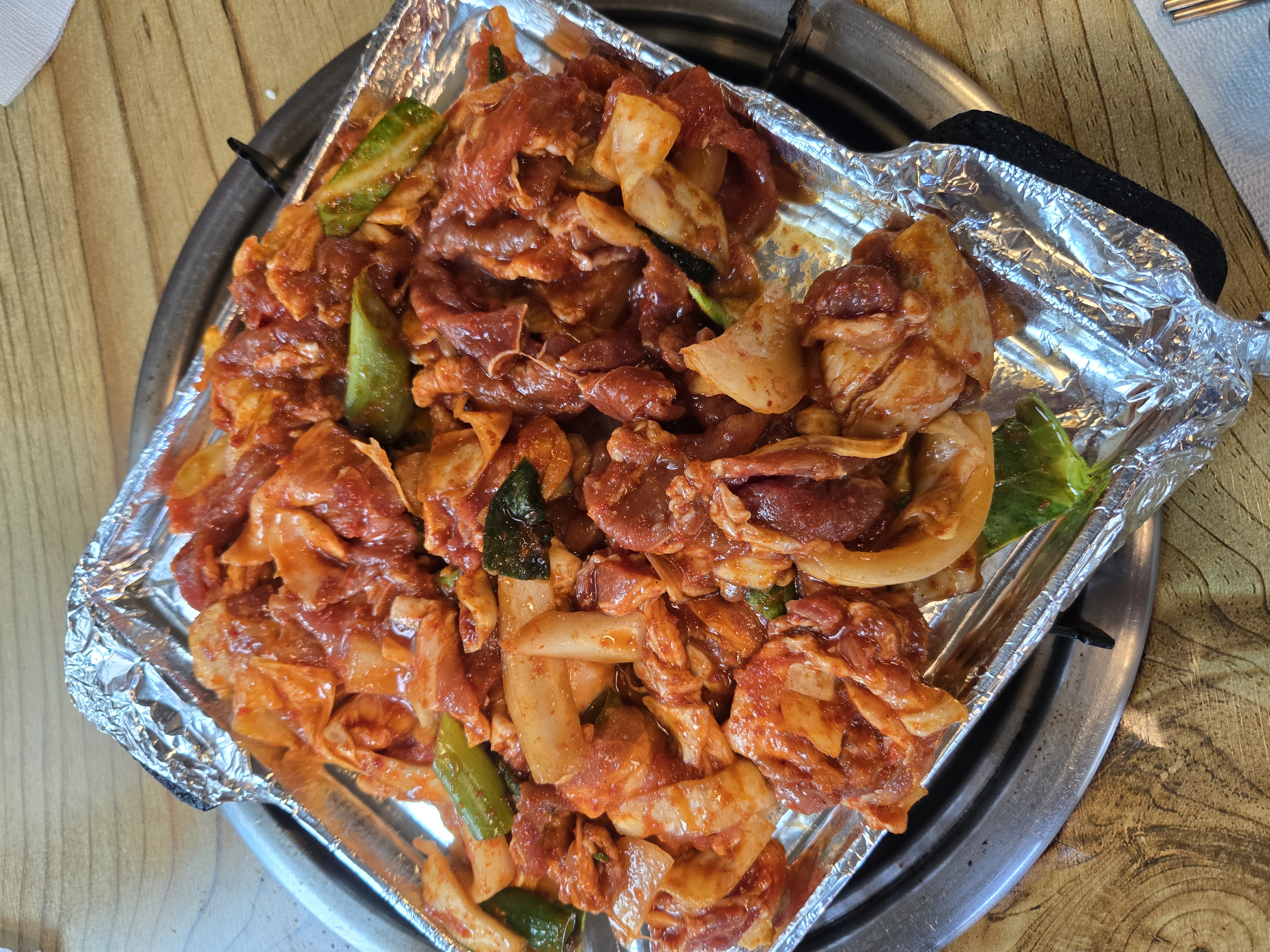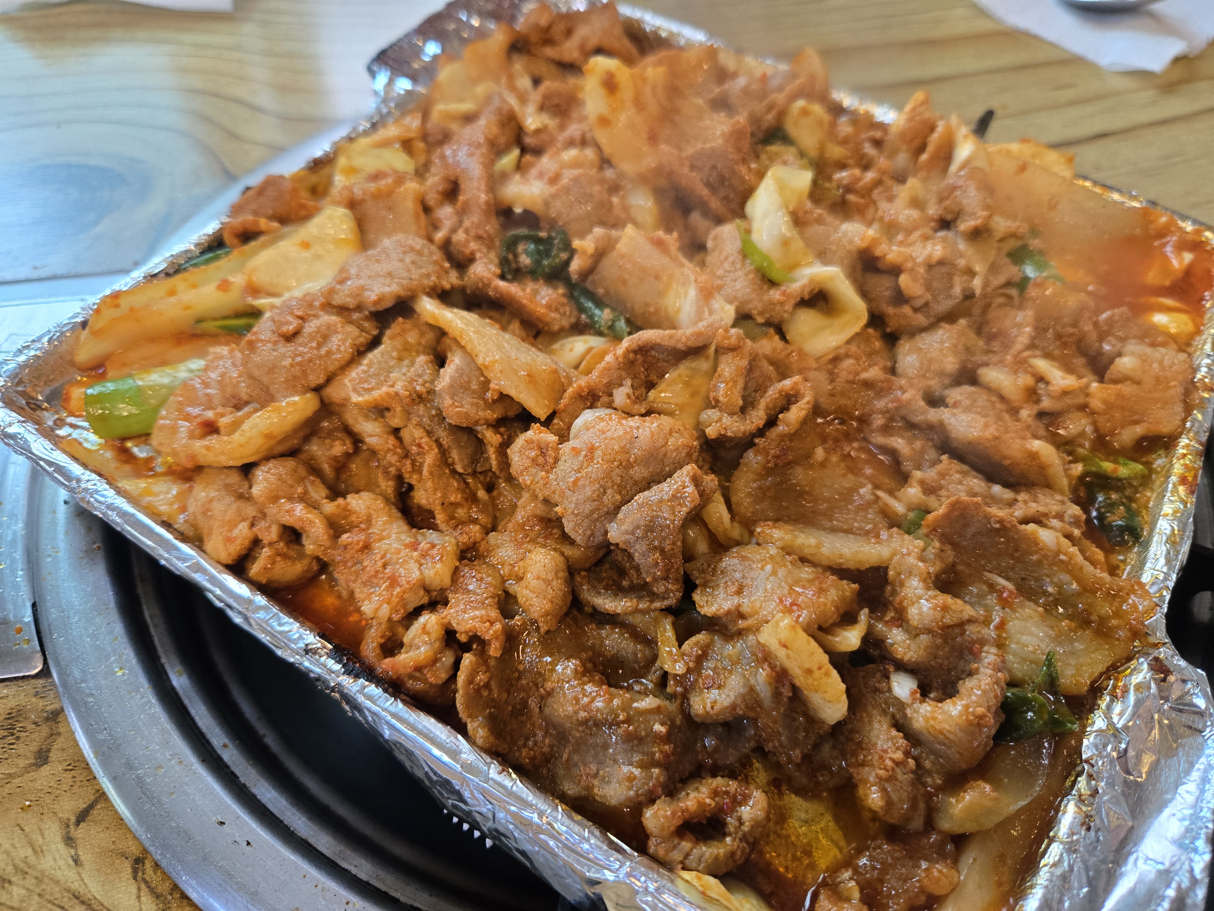 제육볶음은 무쇠불판에 호일을 깔아 조리한 방식으로,