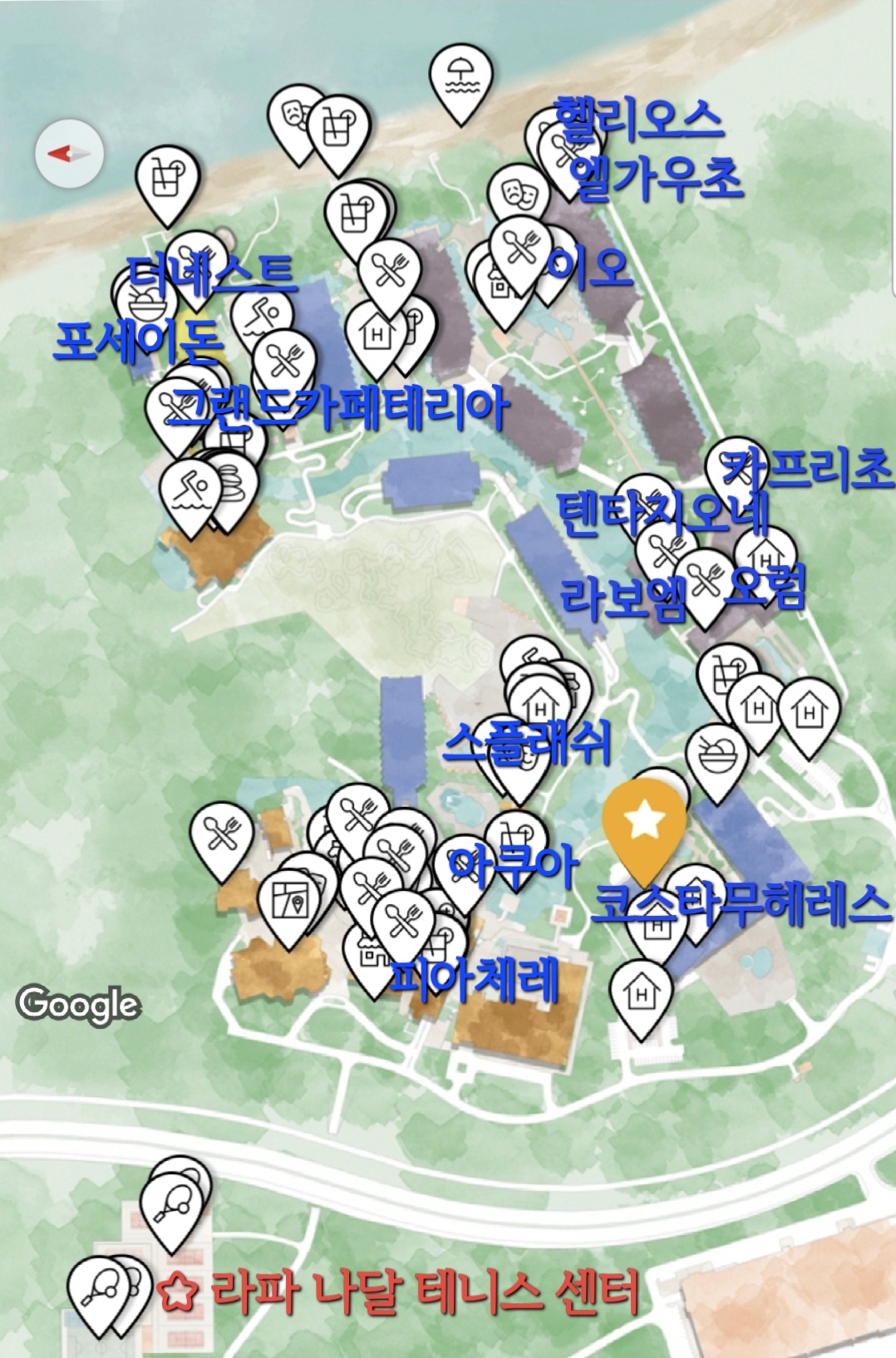 이 'G. Palladium' 어플을 받으면 전체 지도와 레스토랑 메뉴를 모두 볼 수 있습니다.