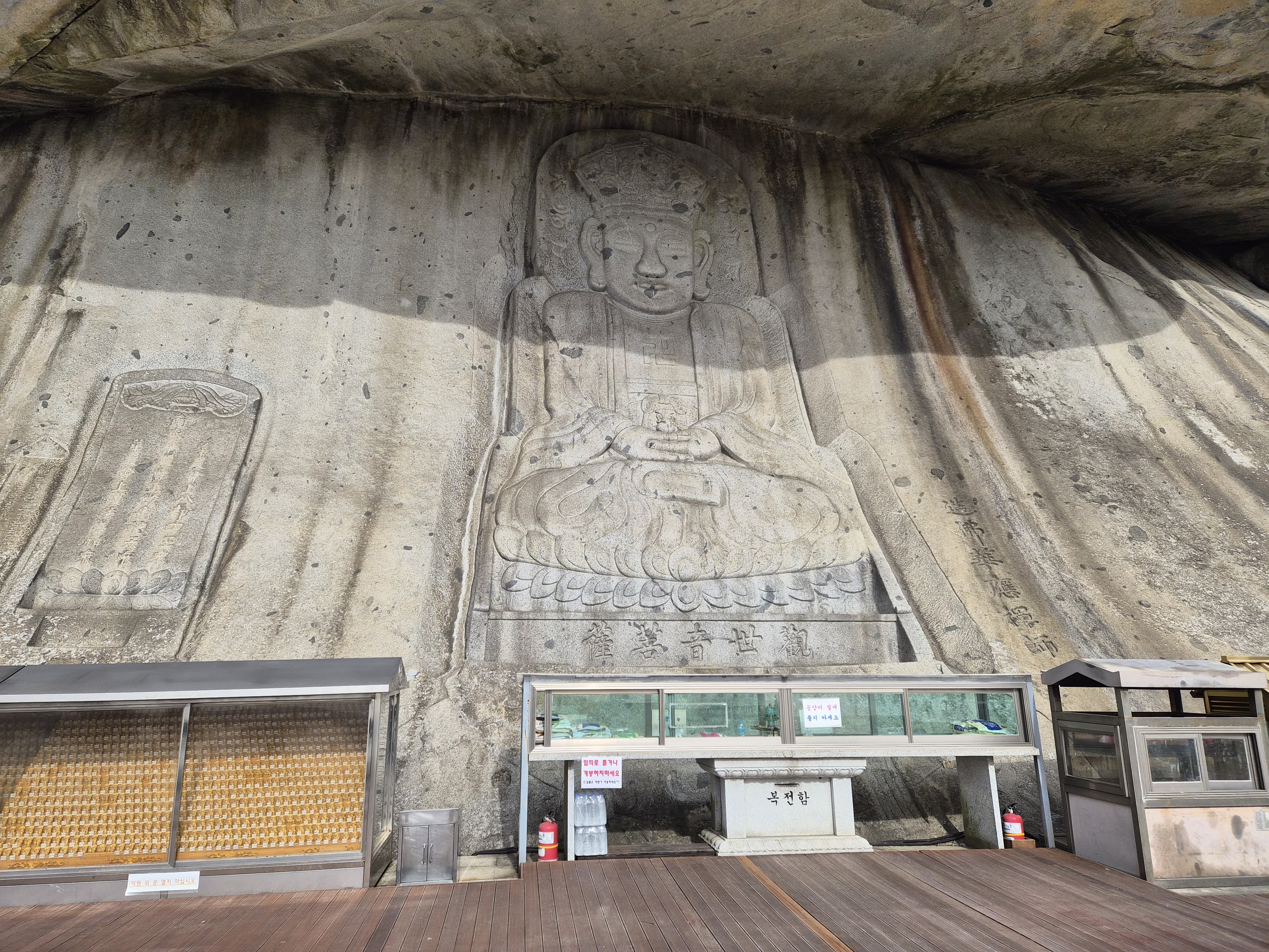 계단을 올라가면 암벽에 새겨진 불상을 볼 수 있습니다.