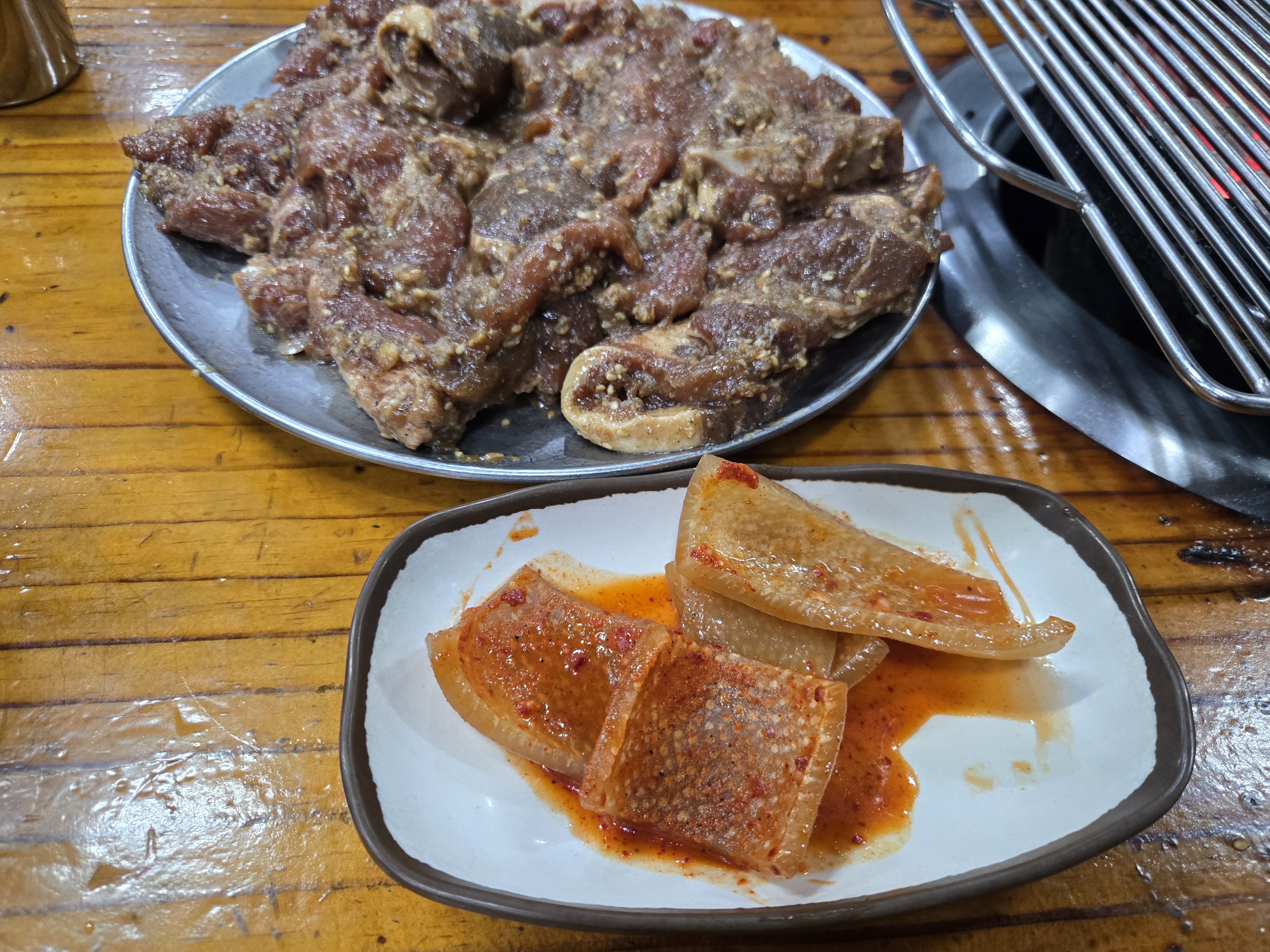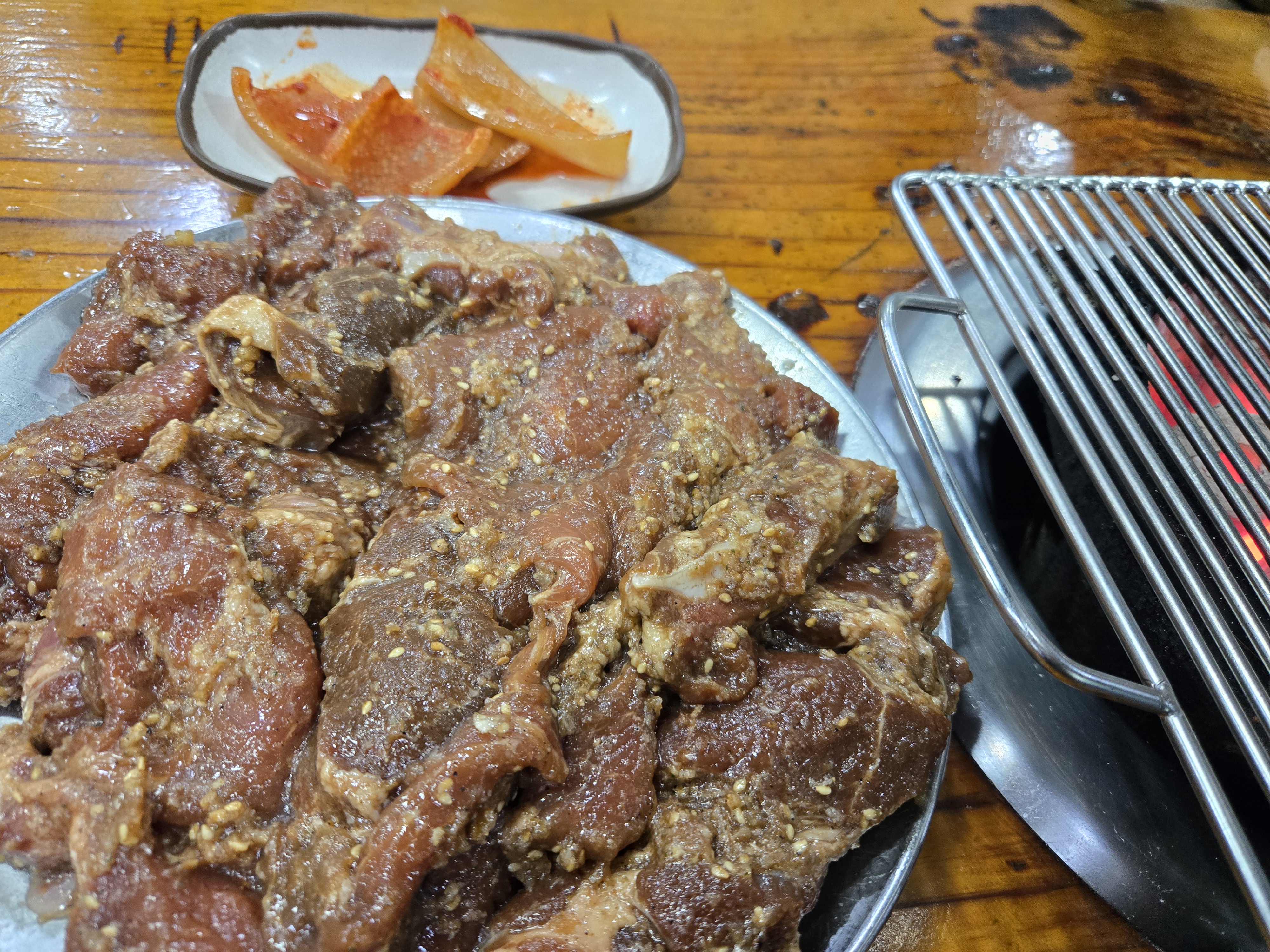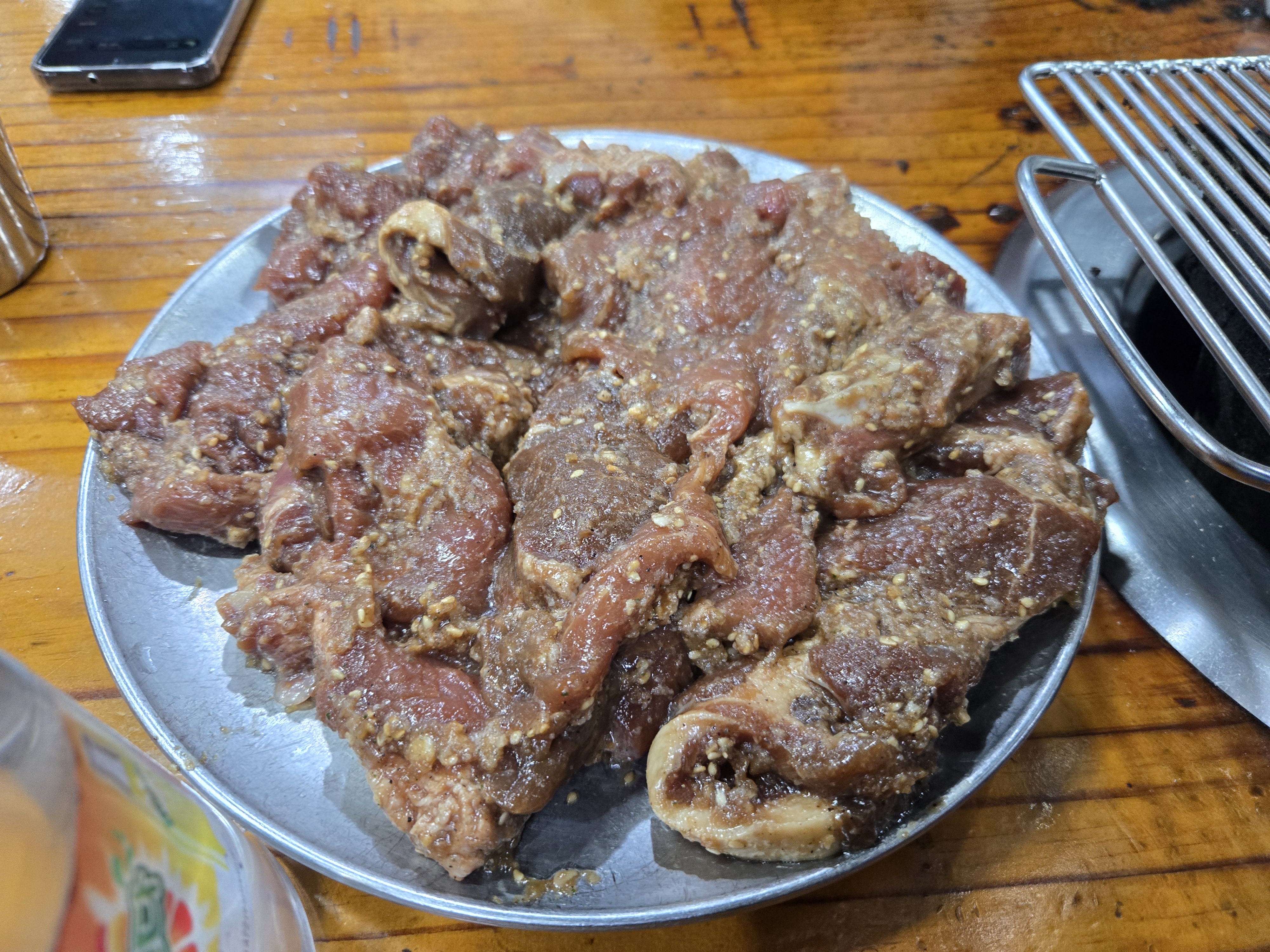 자극적이지 않은 양념의 숯불 돼지고기를 편하게 즐기고 싶을 때 좋은 곳입니다.