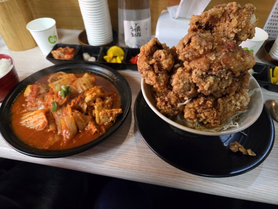 이날 먹은 메뉴는 가라아게동과 김치찜 정식입니다.